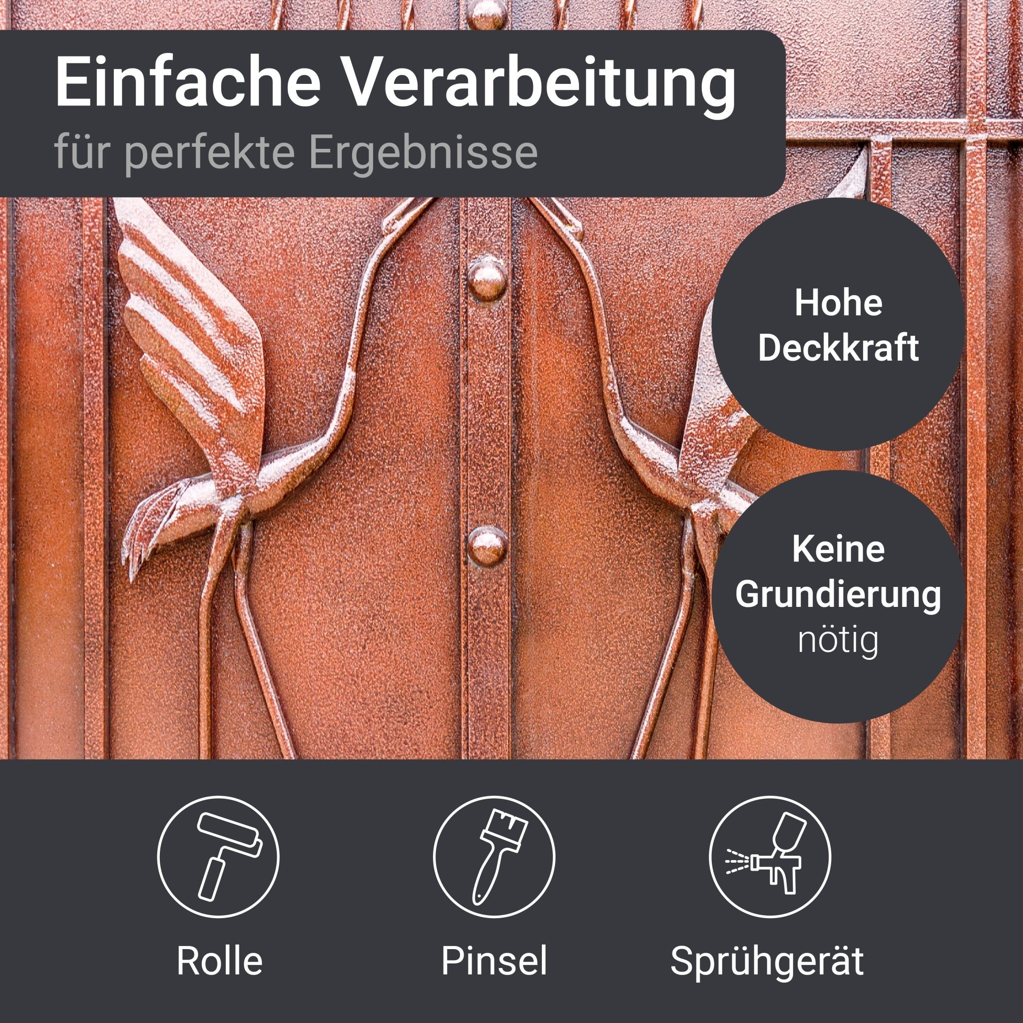 Suitable for metal surfaces such as fences, doors, garden furniture, garden fences, railings, bicycle parts and much more