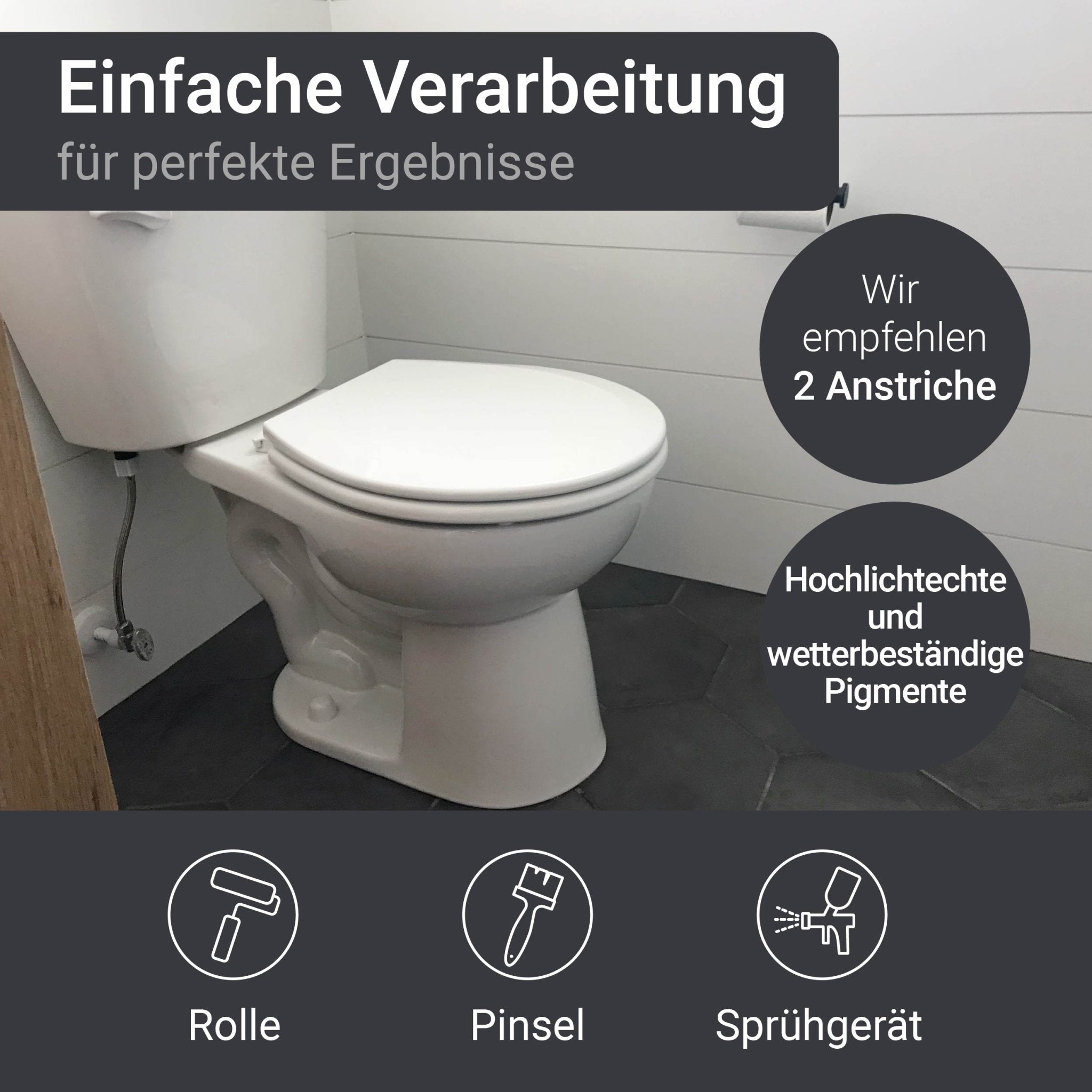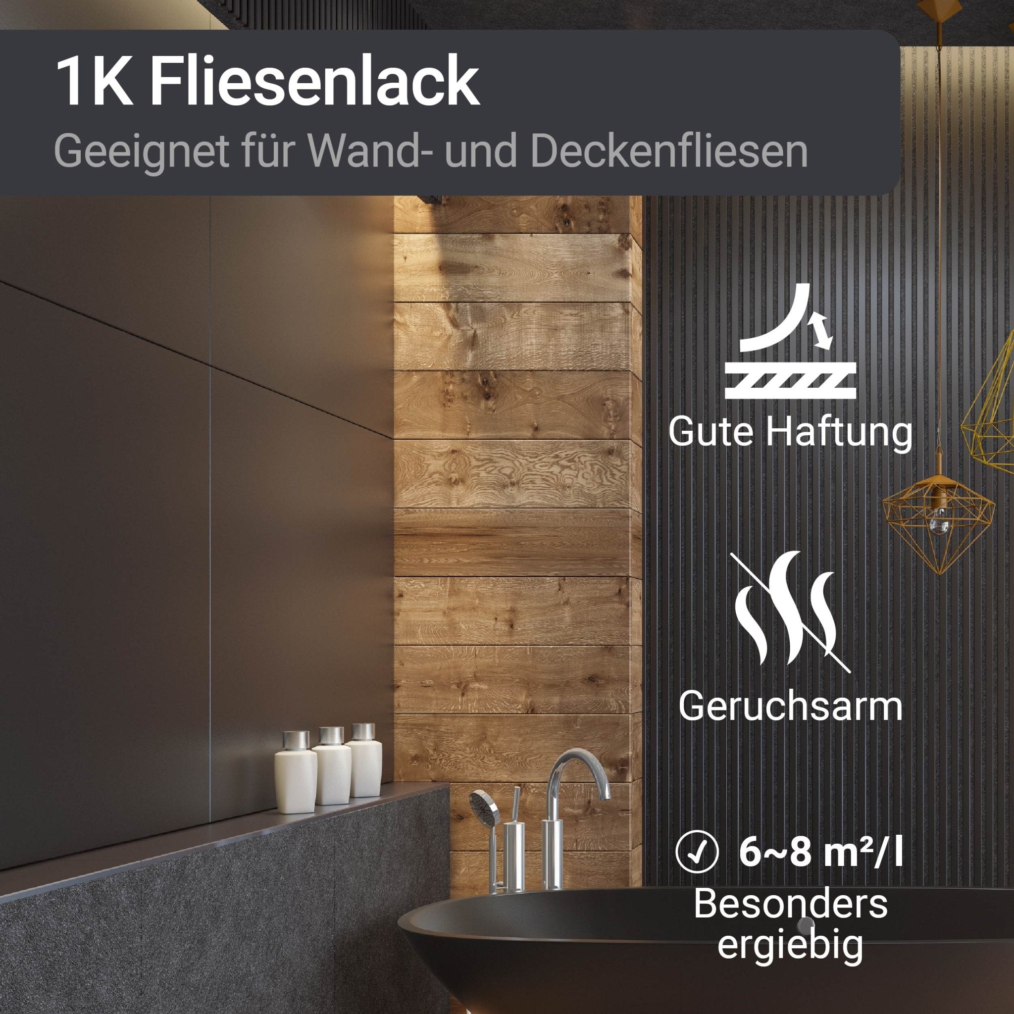 Si ya no te gustan los azulejos viejos del baño o la cocina, tienes la opción de renovar los revestimientos. Con nuestro sistema de revestimiento de color para azulejos de pared 1K, puede pintar fácilmente sobre áreas más grandes en el color deseado. ¡Antes de pintar las baldosas, límpielas a fondo, líjelas y aplique la Imprimación especial para baldosas W708!