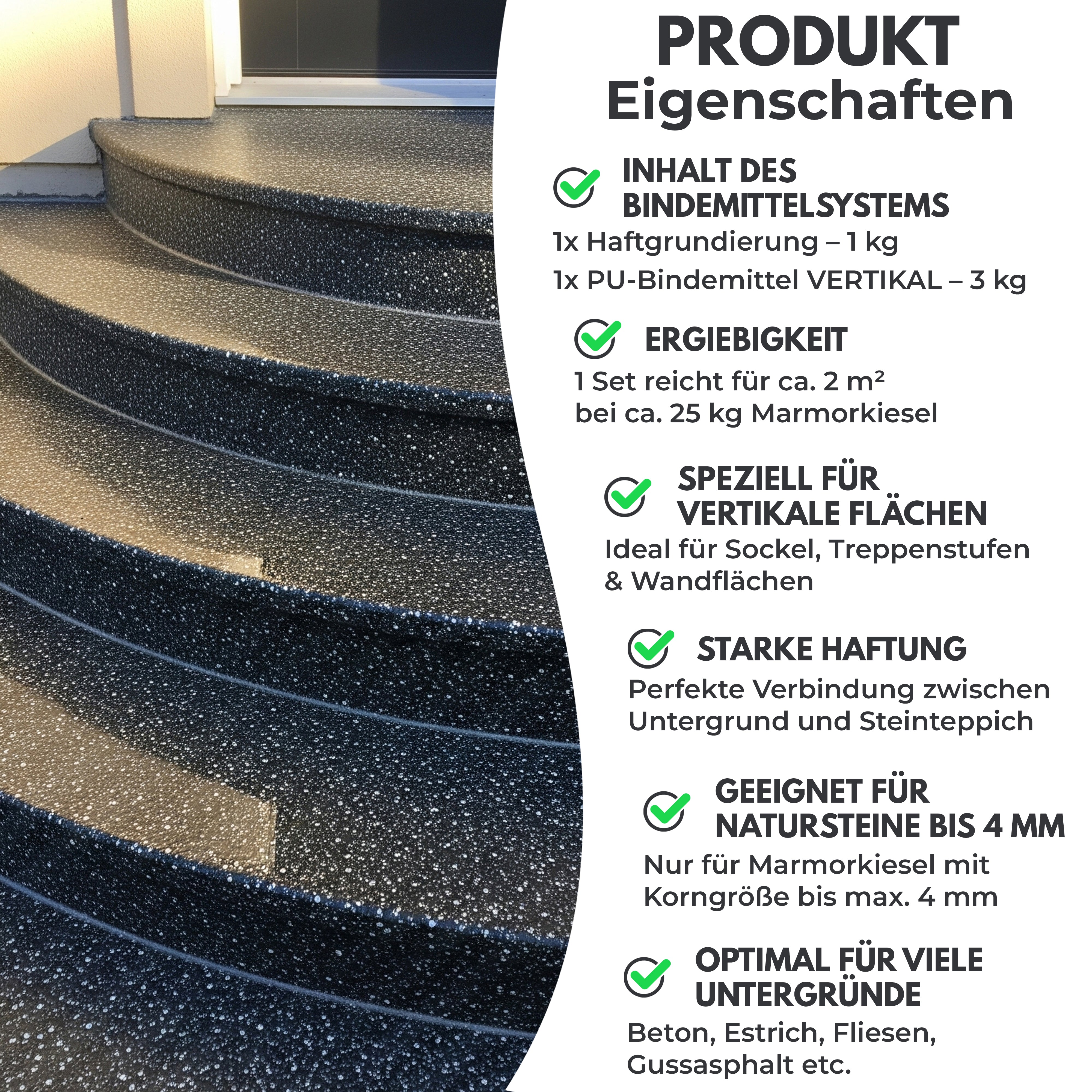 PU Steinteppich Bindemittel Vertikal 3Kg + Grundierung 1Kg | Bindesystem Senkrecht Wand Treppe Sockel W738 - WO - WE.SHOP