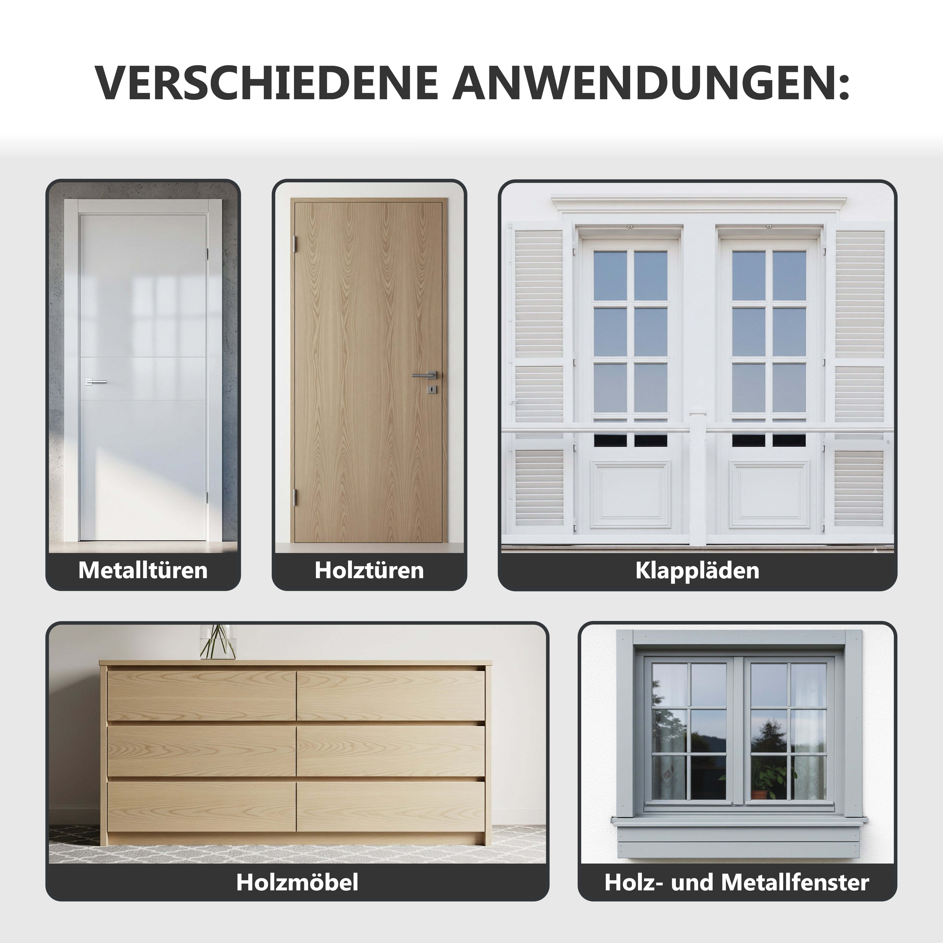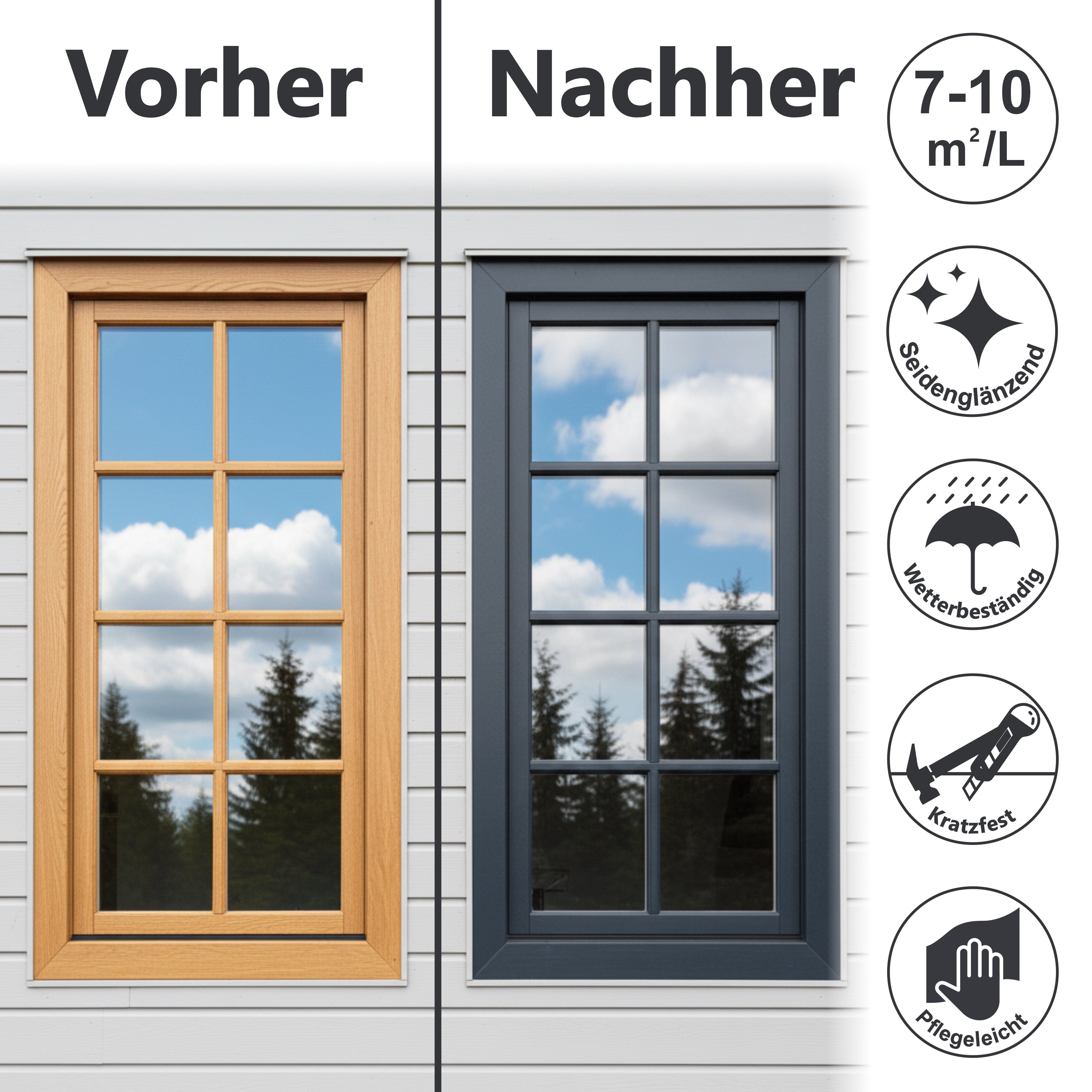 • Como pintura protectora contra la intemperie para pintar ventanas y puertas, garantiza resistencia a la intemperie y una protección duradera.
