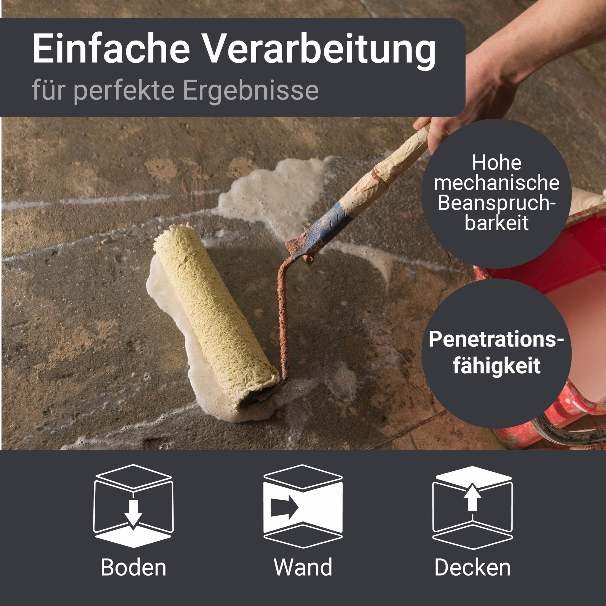 Die Beschichtung von Böden stellt aufgrund derer oft sehr glatten Oberflächen eine extreme Herausforderung für die Anhaftung von Epoxidharzbeschichtungen dar. W703 begegnet dieser Herausforderung erfolgreich, indem es eine hoch belastbare Haftbrücke zwischen der Epoxidharzbeschichtung und dem Untergrund bildet.