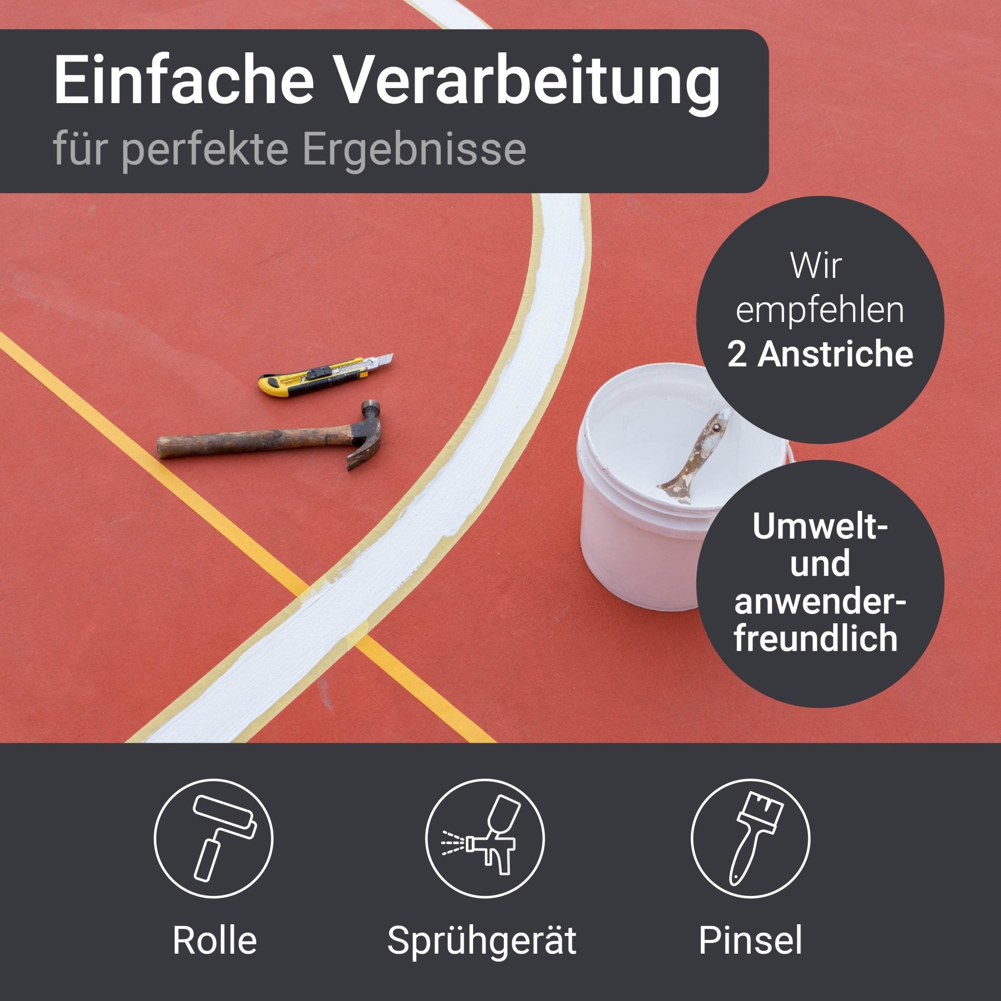 • Anwendungsbereich: Parkplatzmarkierung, Hallenmarkierung, Straßenmarkierung uvm